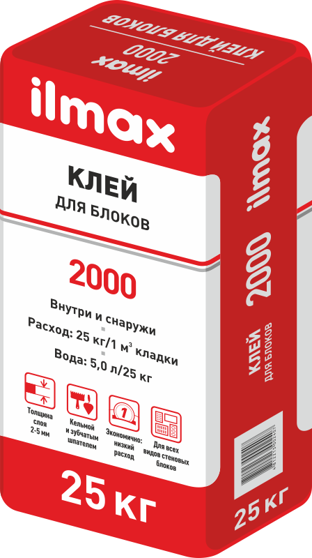 - Расход 1,6...1,8 кг/м2*1 мм (25 кг/1м3 кладки)