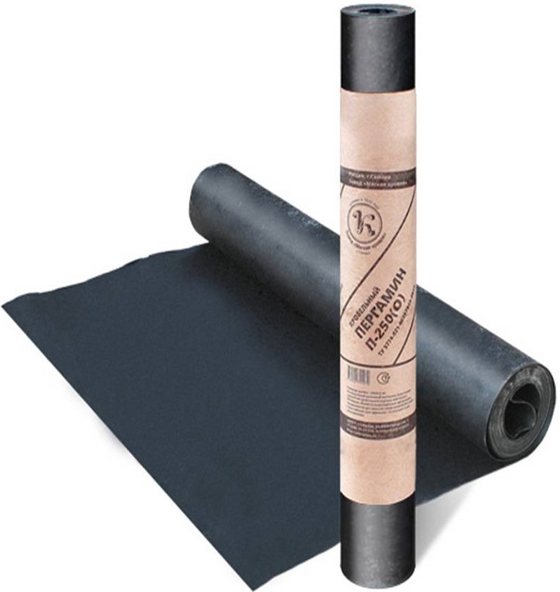 Этот беспокровный подкладочный материал предназначен для нижних слоев кровельного ковра из рубероидного покрытия. Изготавливают кровельный пергамин из картона путем пропитки нефтяным битумом. Выпускают следующие марки этого материала: П-300 и П-350. Реализуется пергамин рулонами по 20 м2 и массой 13-15 кг.